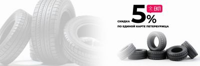 Постоянная скидка для держателей Единой карты петербуржца — 5% на все шины и диски, представленные на сайте по промокоду «EKP5».
